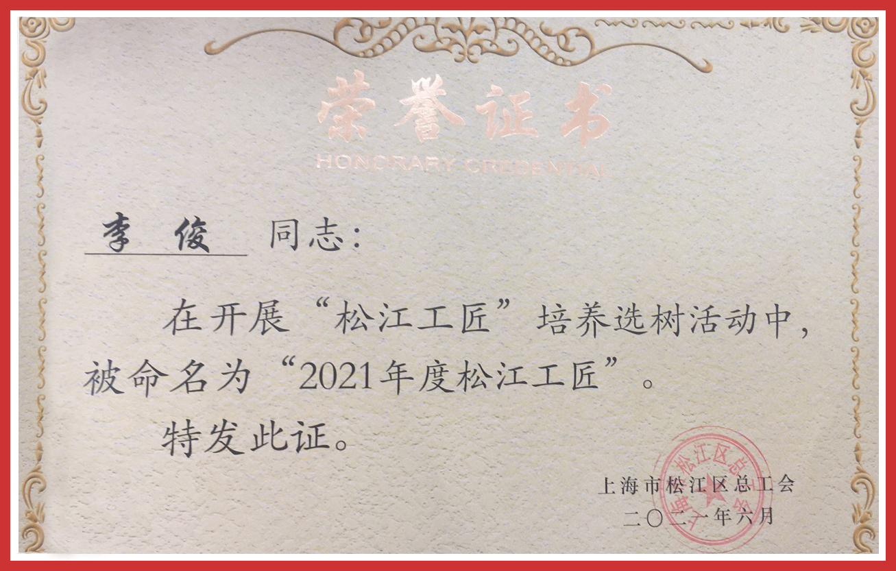 近日,上海市松江區總工會(huì )公布了2021年度“松江工匠”榮譽(yù)名單,作為扎根在松江九亭的高新技術(shù)企業(yè)代表,旦迪通信總經(jīng)理李俊有幸上榜,獲此殊榮。