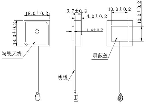 1、北斗內(nèi)置有源天線,外觀尺寸:18mm×18mm×6.7mm/18mm×18mm×4.7mm;